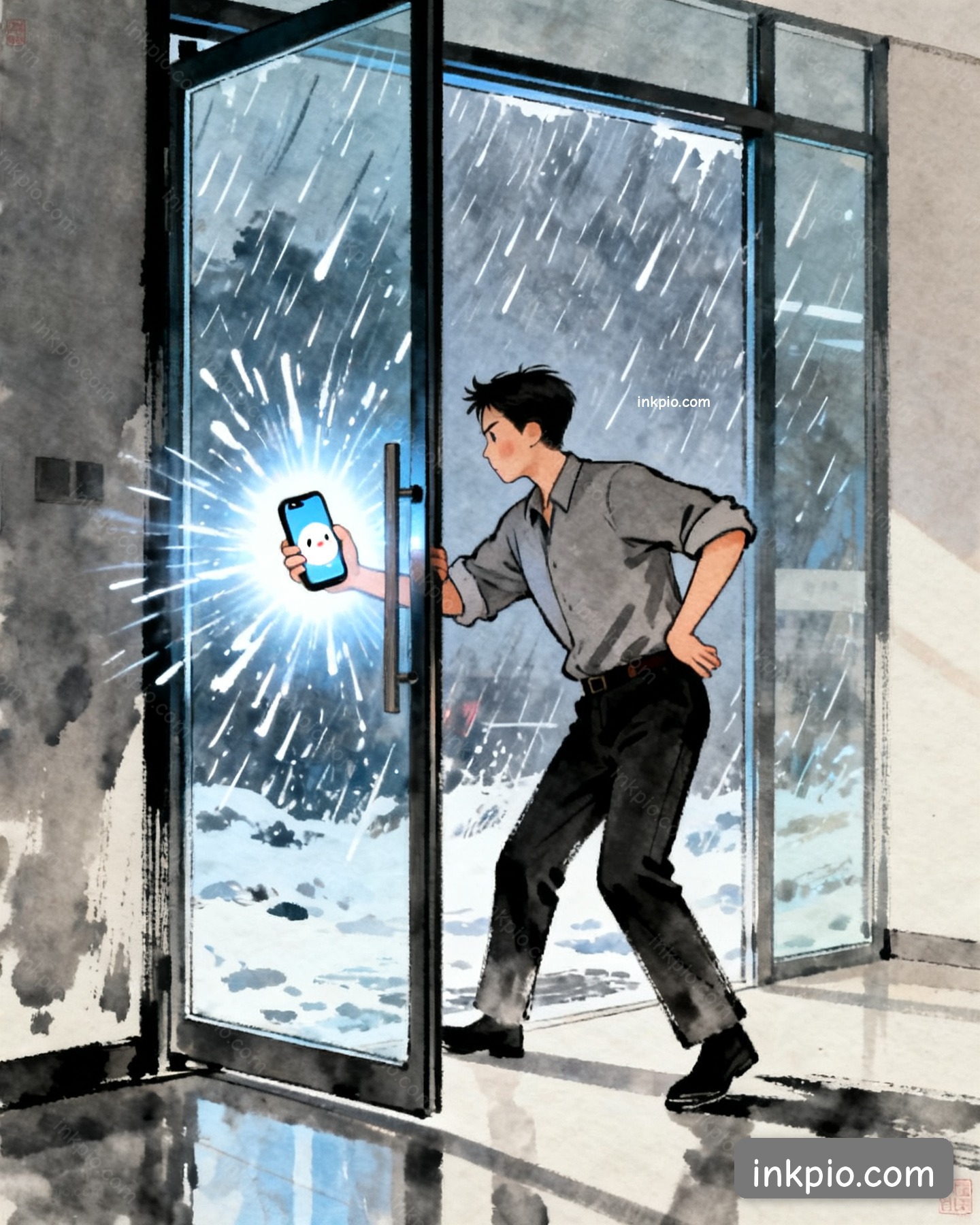 Peace never lasted long. The moment he stood up and shoved the heavy door open, a brutal draft of winter air slammed right into his face. His phone lit up again with a fresh wave of manager alerts, and his spine snapped back into that familiar hunched posture. Shoulders locked, jaw tightened, and the brief escape dissolved into another round of urgent pings. He stepped back onto the pavement, already typing an apology for a meeting he hadn't attended yet.