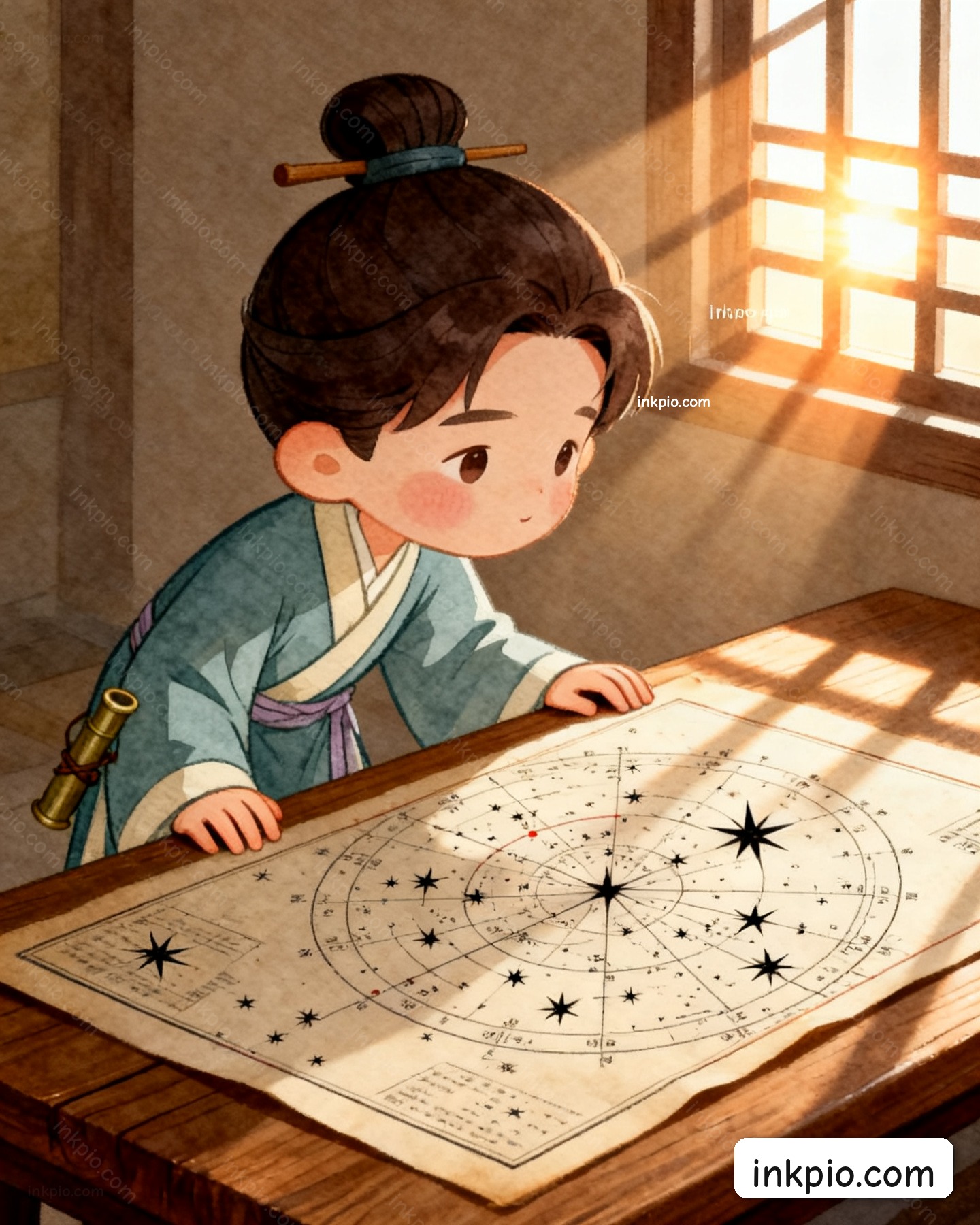 First light slipped through the wooden lattice and caught the corrected chart, casting a clean ray across the bamboo rod. His shoulders dropped as he rested his hands on the smooth desk, satisfied that the spring planting schedule just returned to zero error. He slid the marked slip into a wooden tube, leaving a quiet mathematical trail that would eventually anchor the *Book of Jin*. The sky kept moving, and he finally had the numbers to keep up.