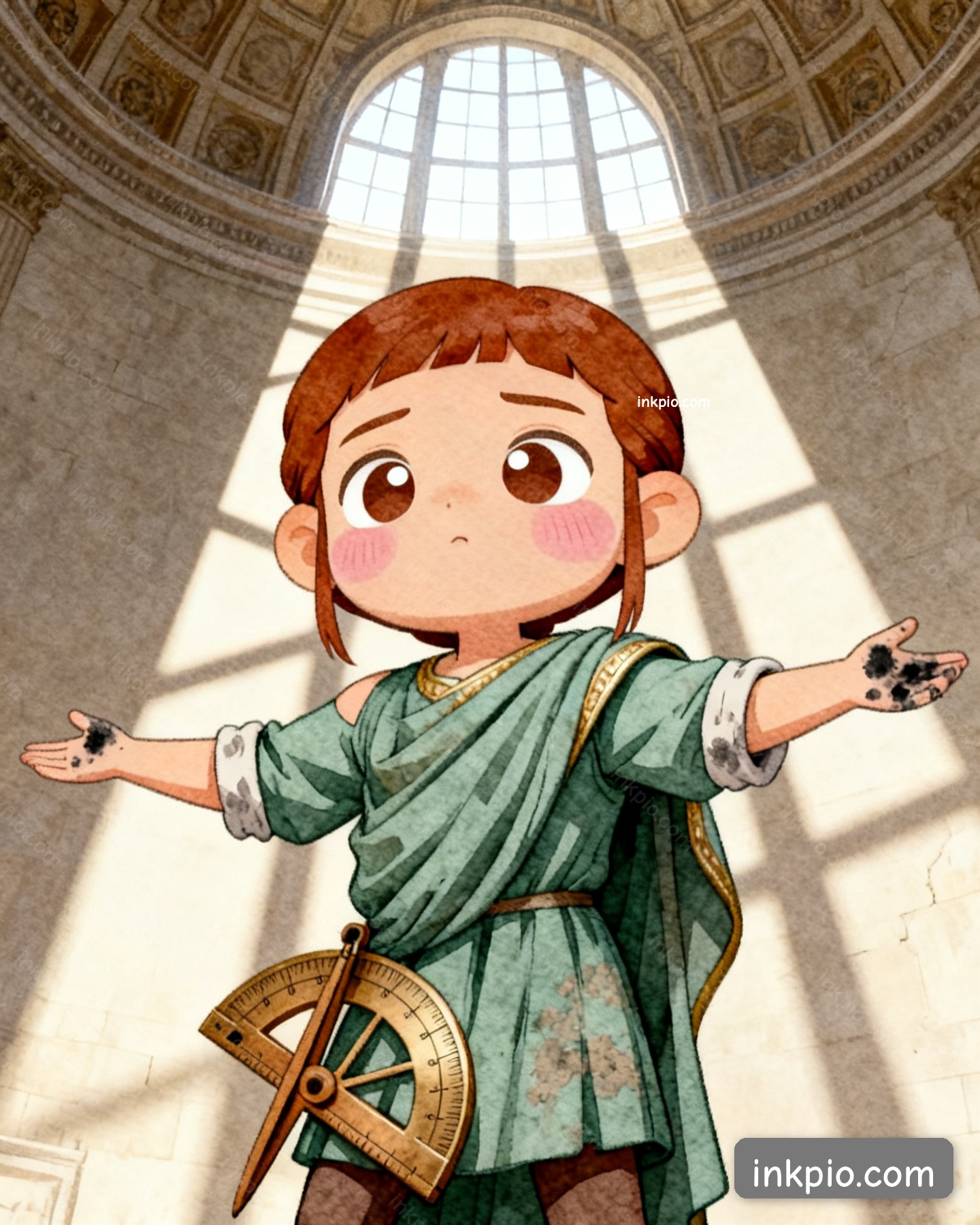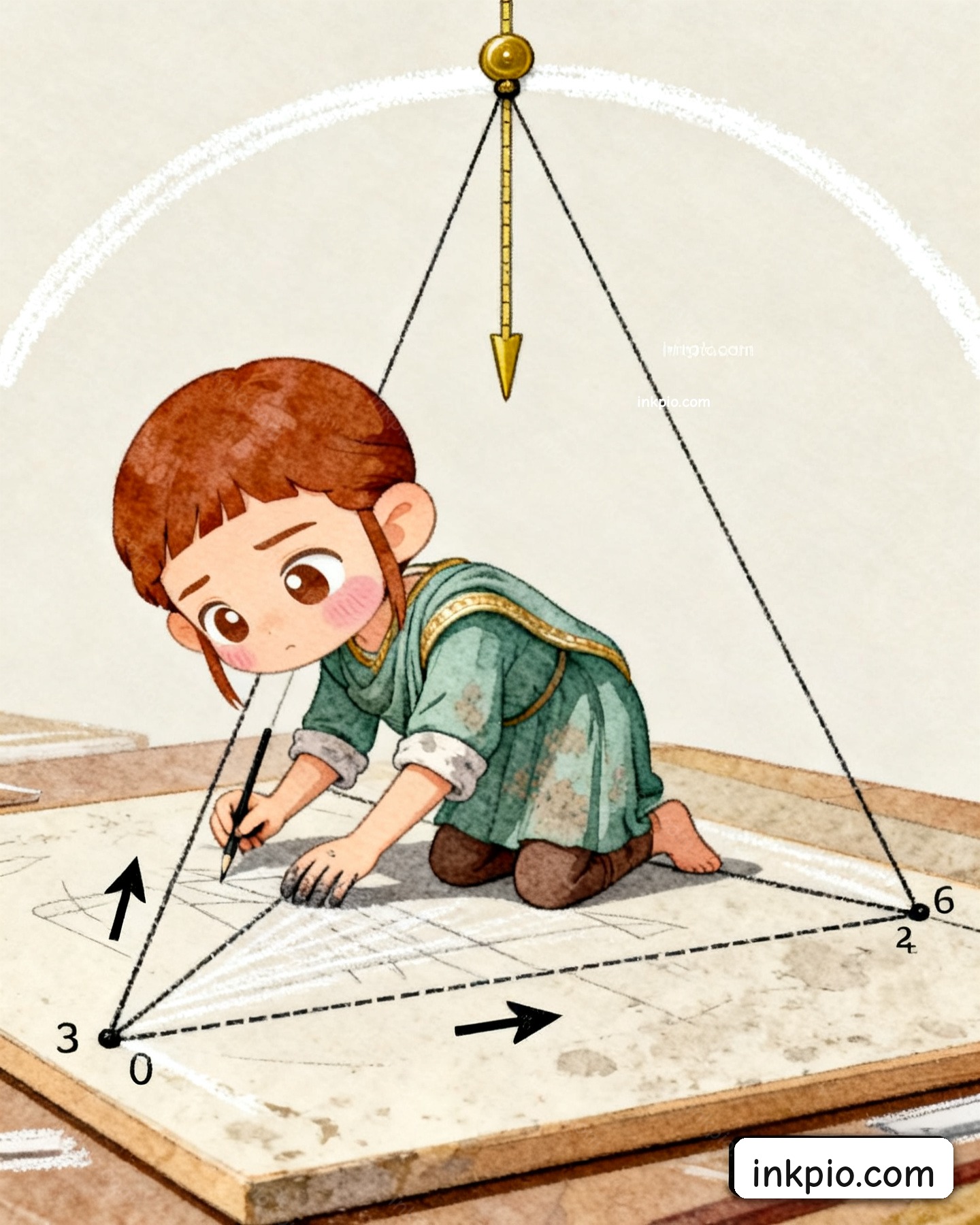 Anthemius tossed the court sketches aside and knelt on the limestone. He tied a length of rough hemp to a lump of chalk and swept two overlapping arcs across the square floor, linking the center to each corner. Picture a square cloth pulled taut by four hands. When you lift the middle, the fabric forms smooth, curved folds that funnel all the tension straight to your fingers. He ran a tight string along those chalk folds and hung a heavy brass plumb bob at the exact intersection. The bob pulled the string dead straight. He finally mapped the route for the pendentive geometry. The sideways pressure would just slide down those curved seams and drop straight into the four massive corner piers.