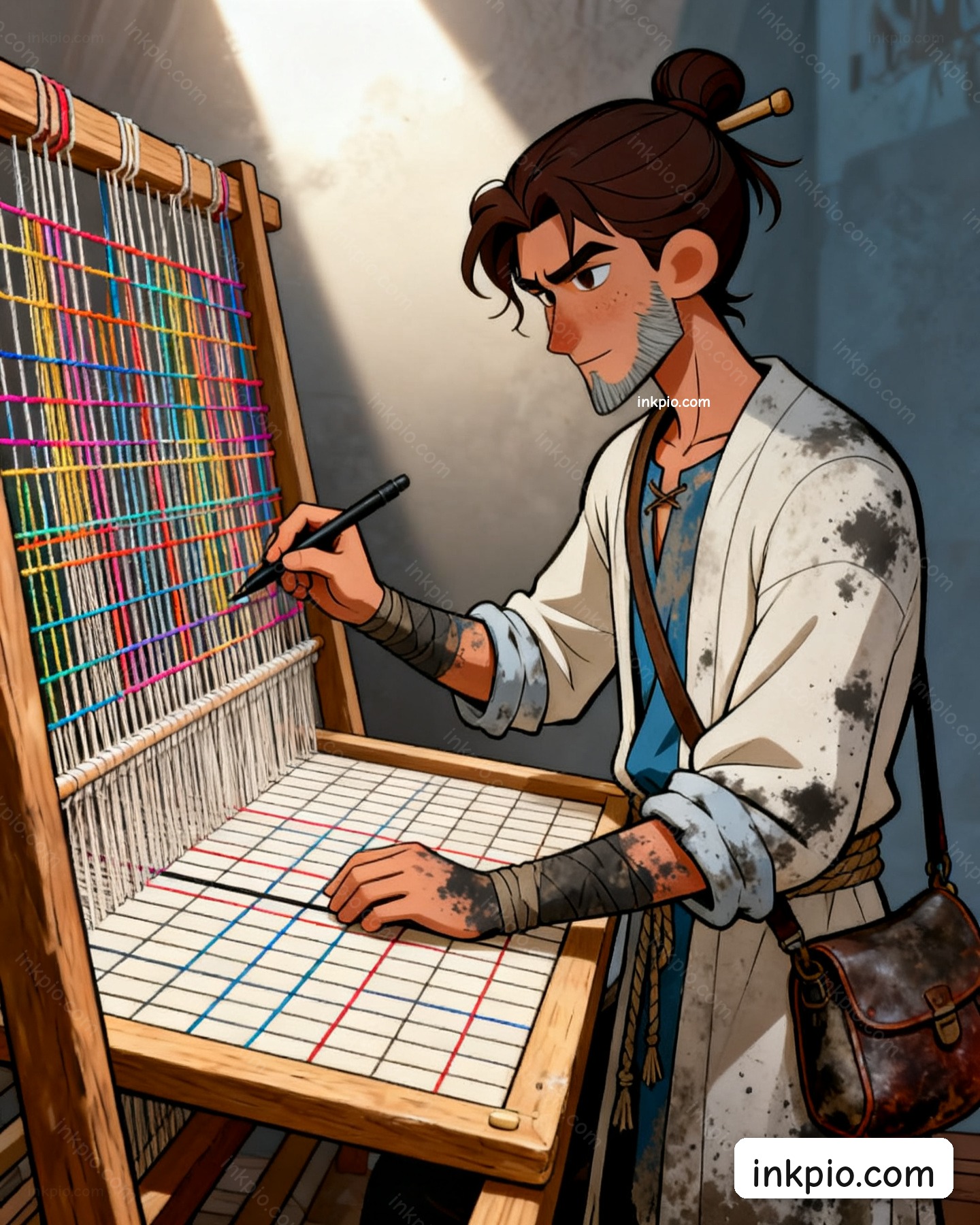Al-Karaji let the argument wash over him and looked away. Across the narrow street, a weaver pulled bright wool through a heavy wooden loom. The horizontal warp crossed the vertical weft, locking into a rigid, predictable pattern. That crossing clicked in his mind. Commercial shares could follow the exact same layout. Instead of wrestling with abstract fractions in the heat, he could pin every claim to a fixed space.
