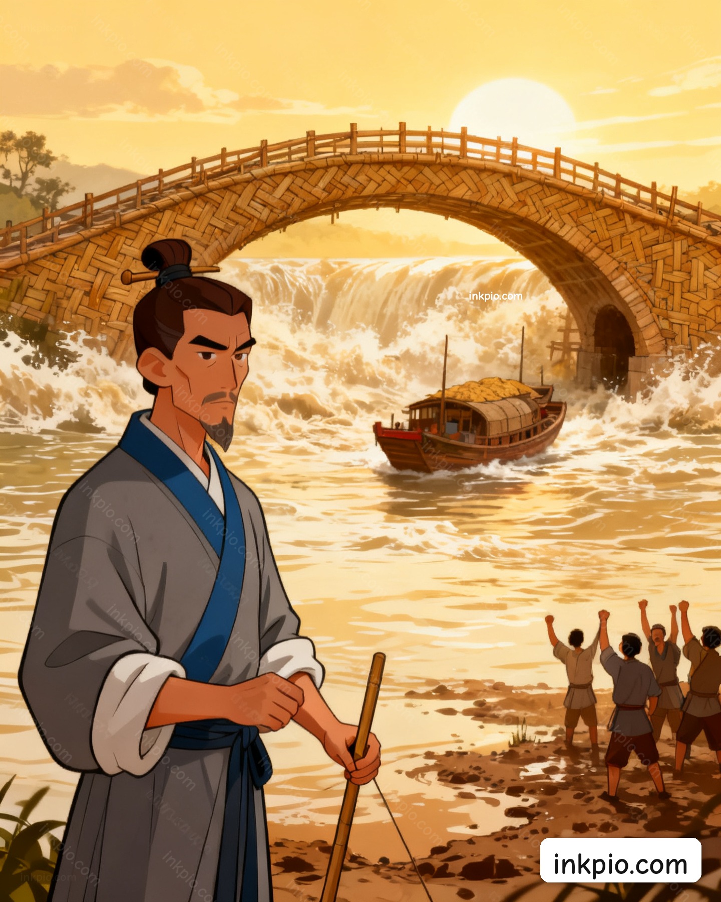 The river chewed through limestone piers and spat the pieces downstream. Every summer flood broke the crossing, and the capital’s grain barges sat stranded in the mud. Shen Kuo paced the bank, staring at cracked masonry and soaked ledgers. He had spent months drawing rigid triangles and loading wooden scale models, but the stiff joints always snapped under the current. Straight lines just couldn’t outfight moving water.